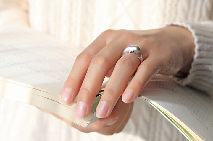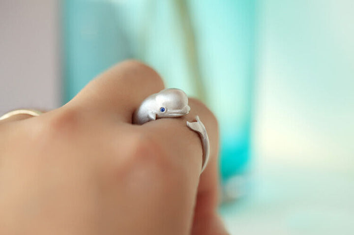Damen Ringe Mode-Delfin matt Offener Ring verstellbar 49-53