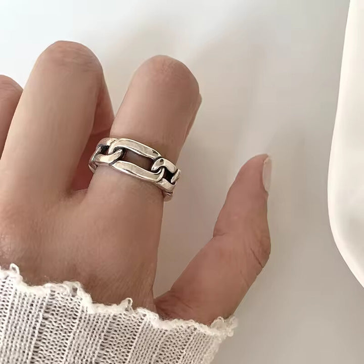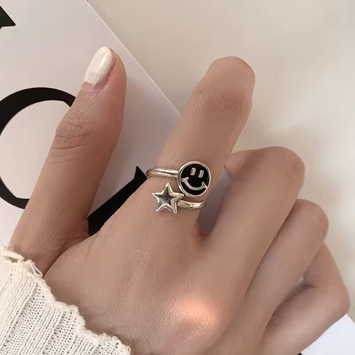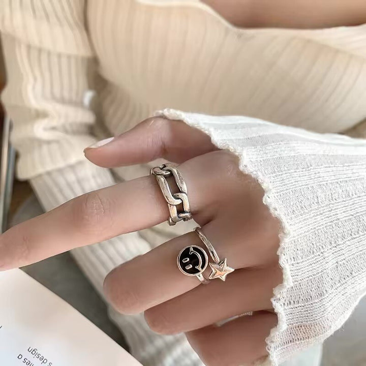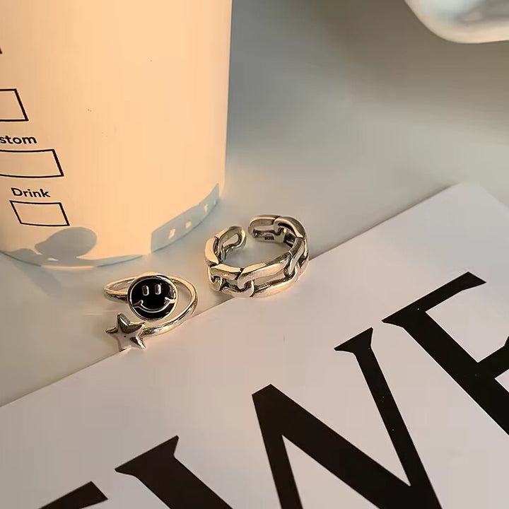 Damen Silber 925 Ring Kette -Stern Größeverstellbar Antik-Optik Geschwärzt