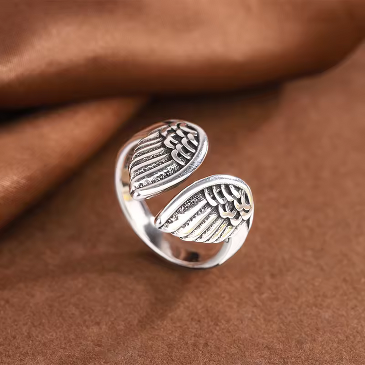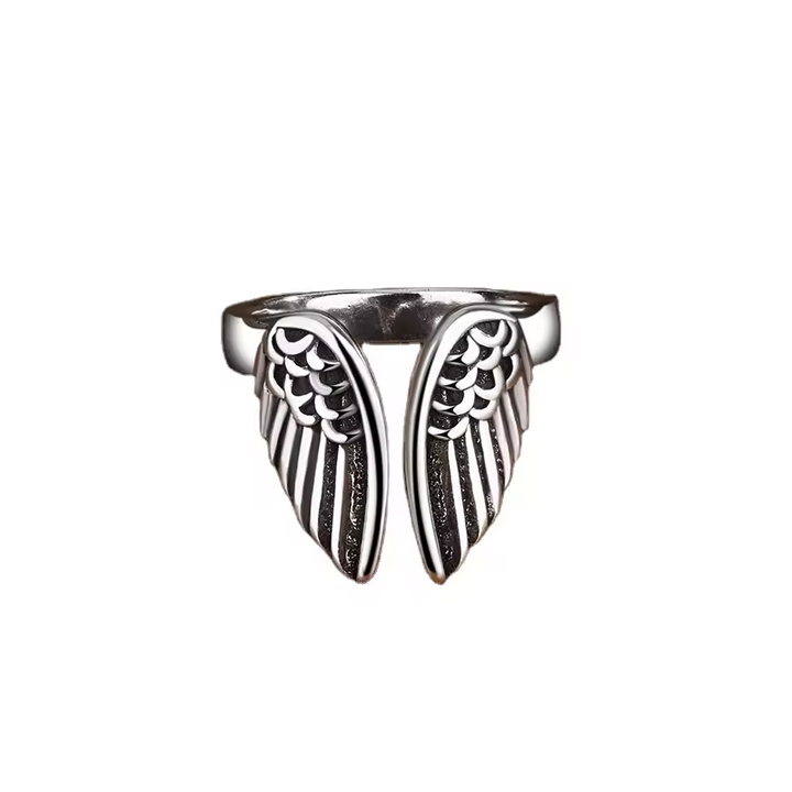 Damen- und Herrenring, Silber 925, geschwärzte Engelsflügel, größenverstellbar
