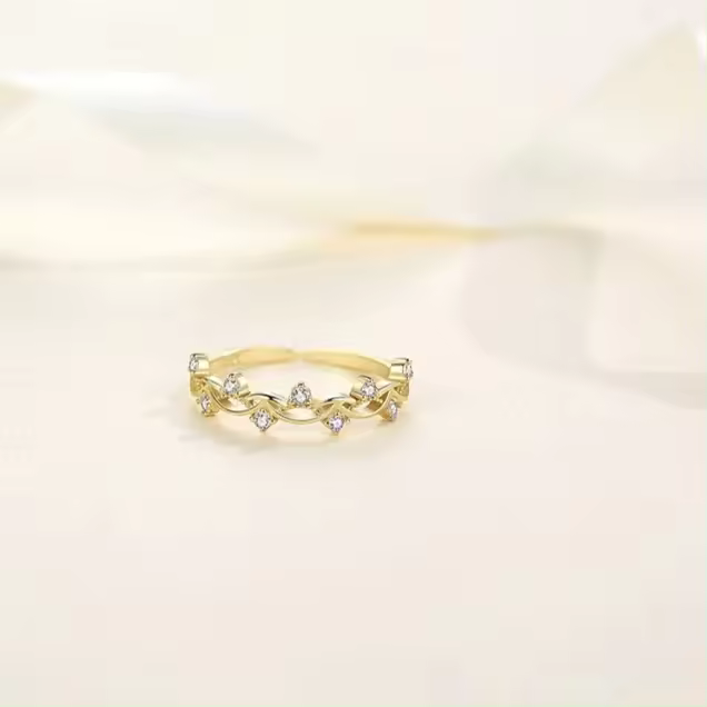 Damen-Versprechensring/Ehering mit Zirkon, dünn, offen, größenverstellbar