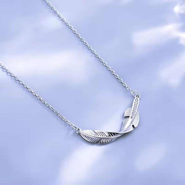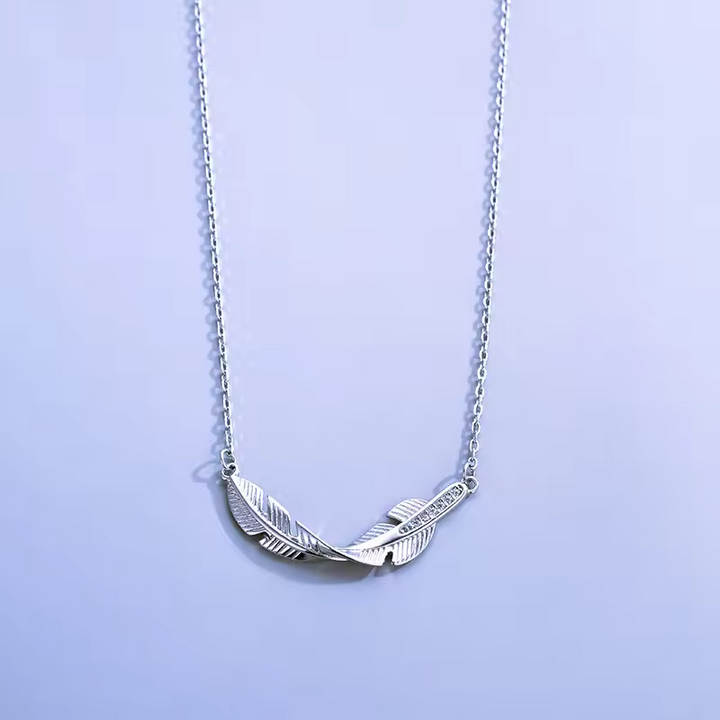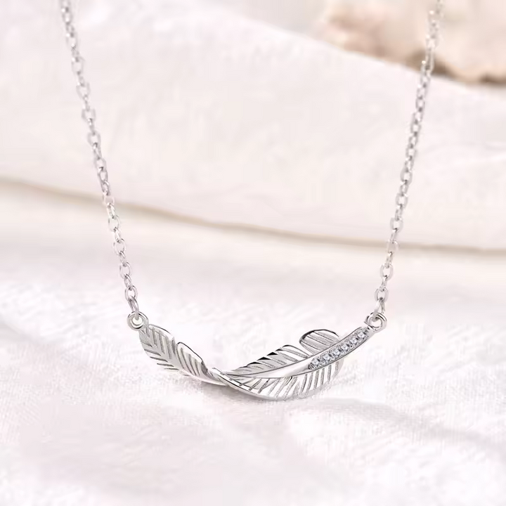 Damenhalskette mit Feder-Anhänger, Silber 925.