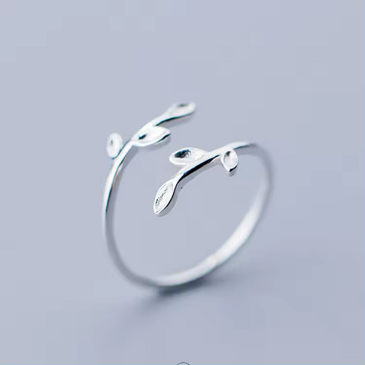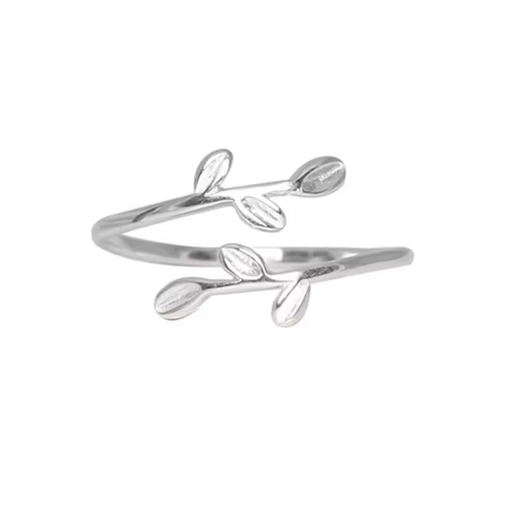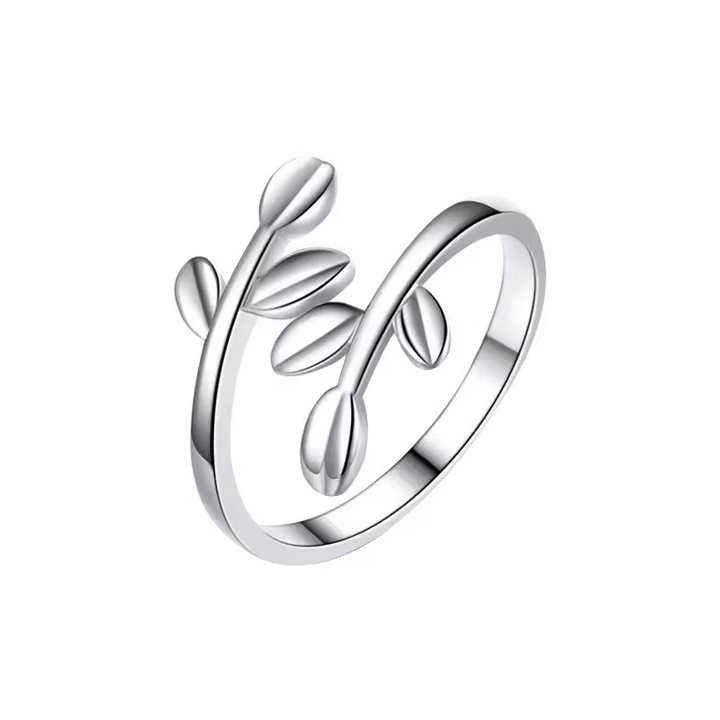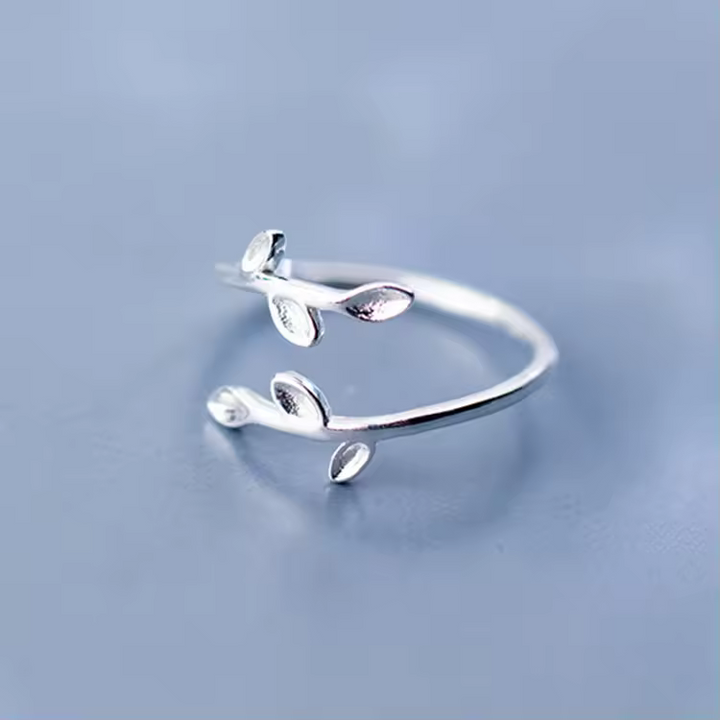Damenring beidseitigem Blatt-Motiv Sterling Silber 925, glatt größenverstellbar