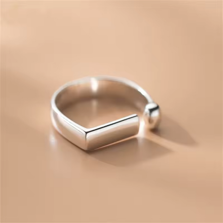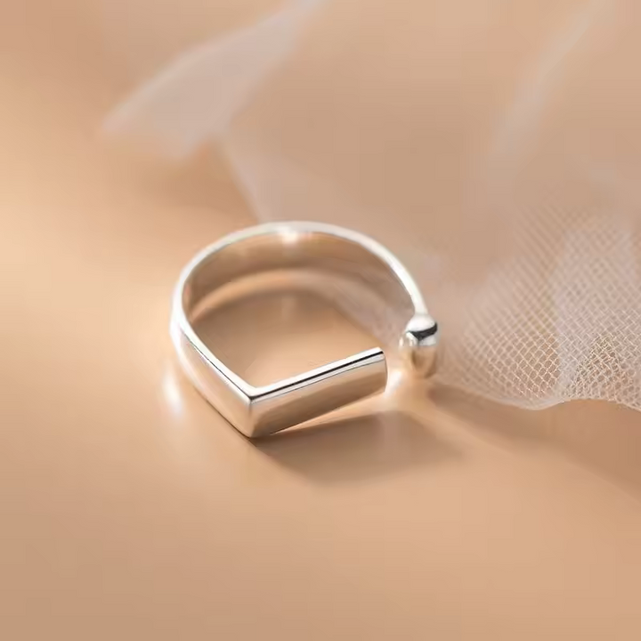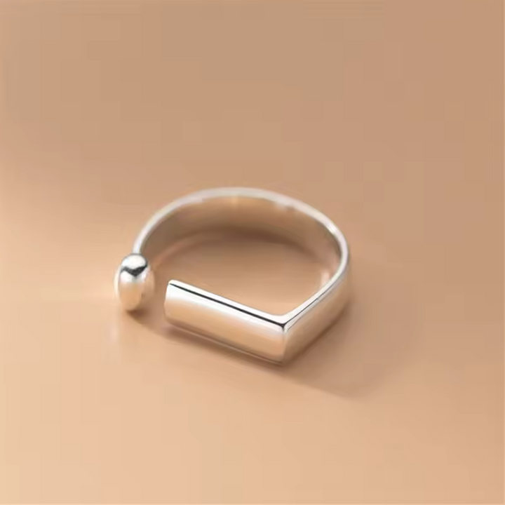 Damenring, D-Motiv, Sterling Silber 925, glatt, größenverstellbar.