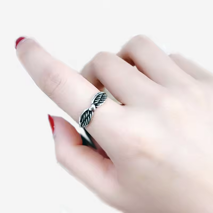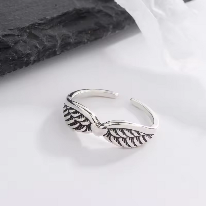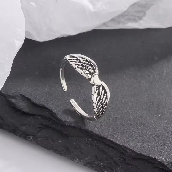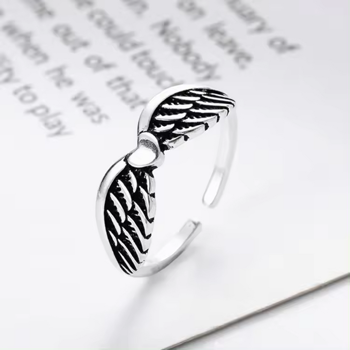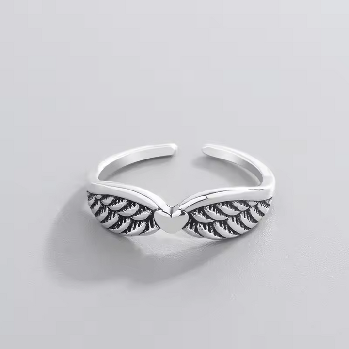 Damenring Engelsflügel-Motiv der Liebe, Sterling-Silber 925, geschwärzt offene Größe."
