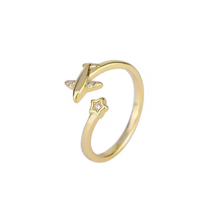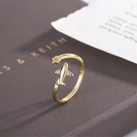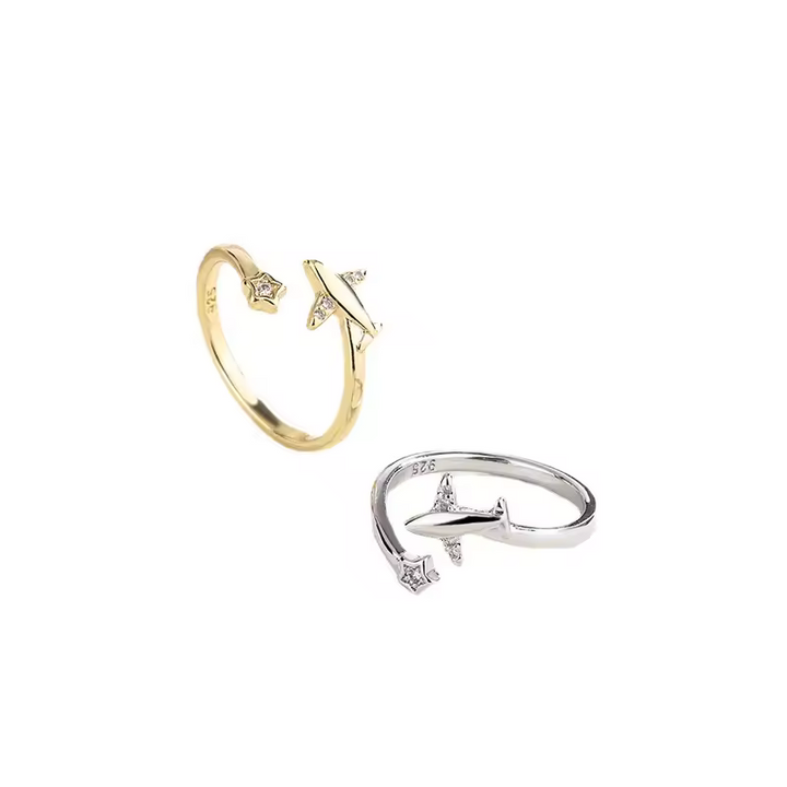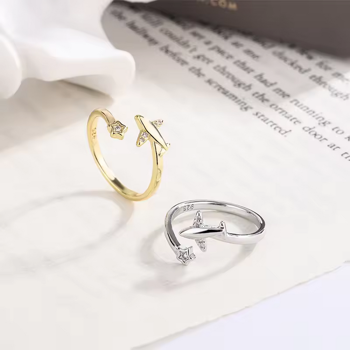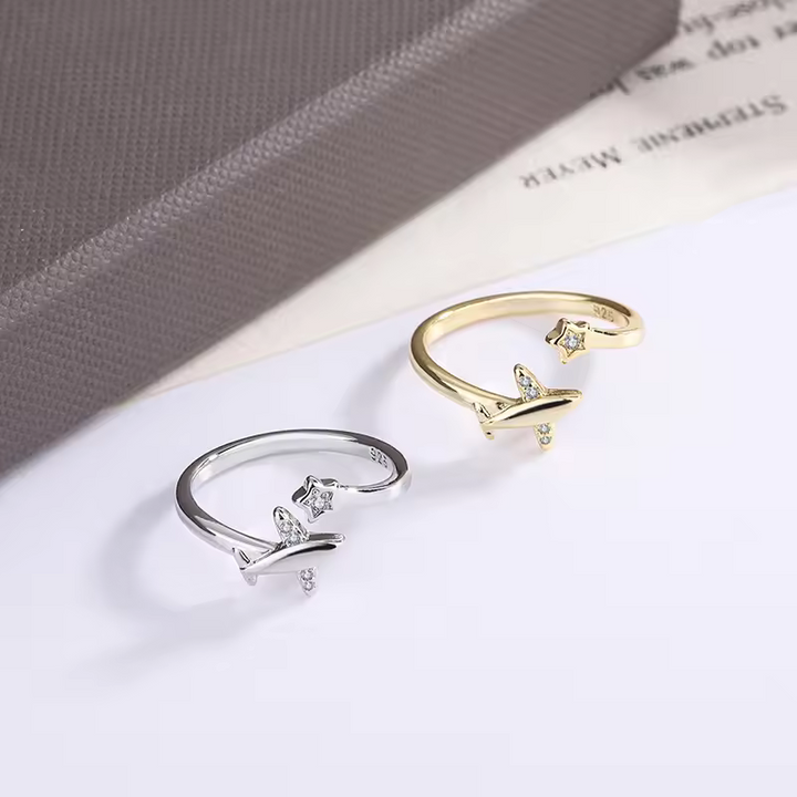 Damenring Flugzeug-Motiv Sterling-Silber 925 m. Zirkonia, in offener Größe.