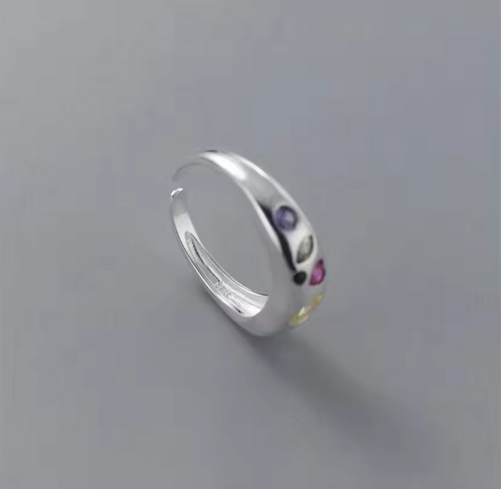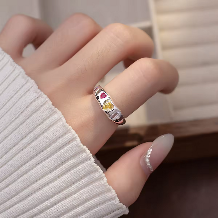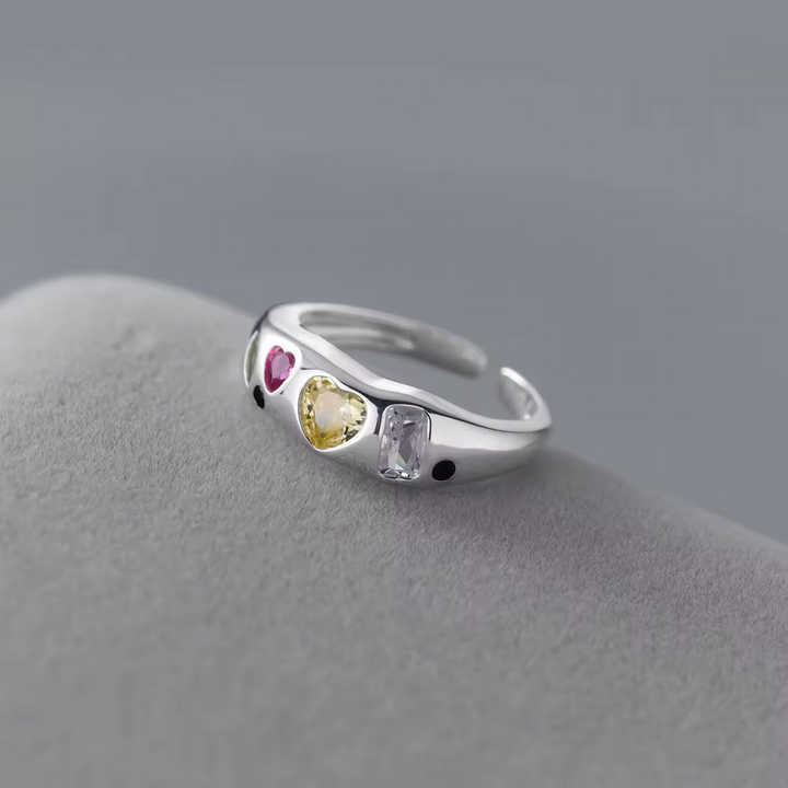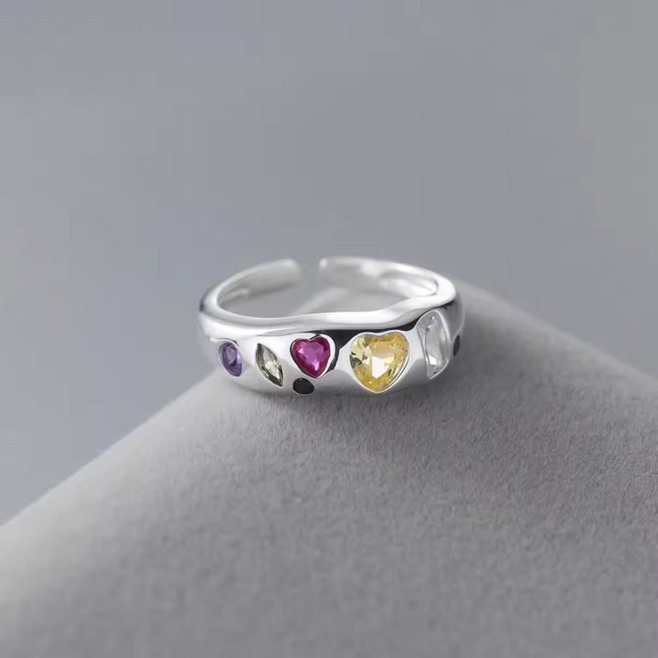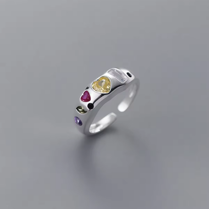 Damenring Herz Silber 925, besetzt m. verschiedenen Multi-Zirkonia.