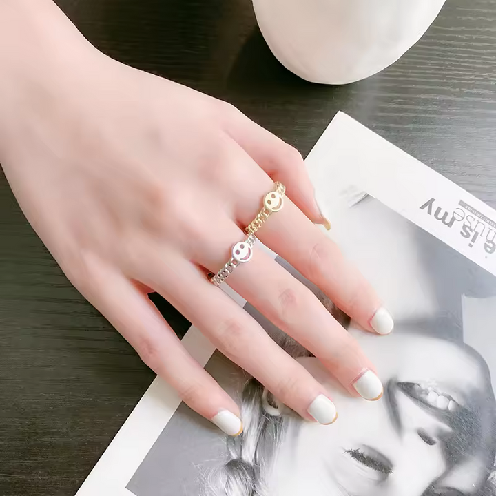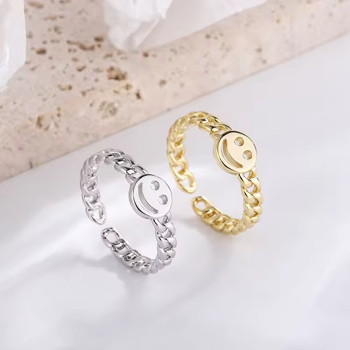 Damenring im Smile-Ketten-Look aus Sterling-Silber 925, offene Größe.