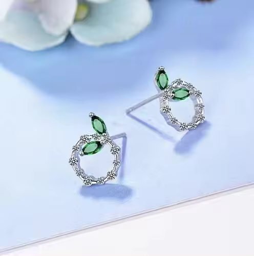 Damenring mit grünem Blattmotiv, Silber 925 mit Zirkonia.
