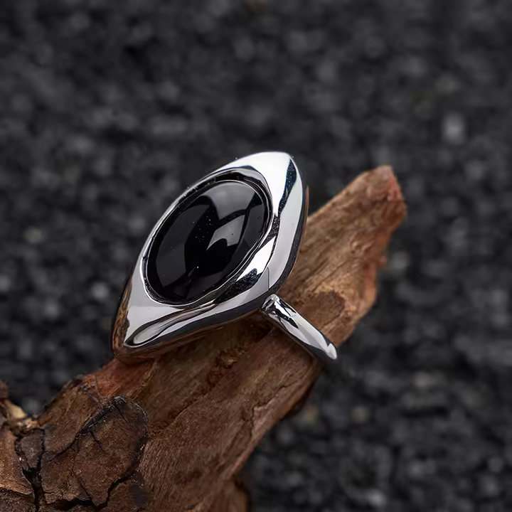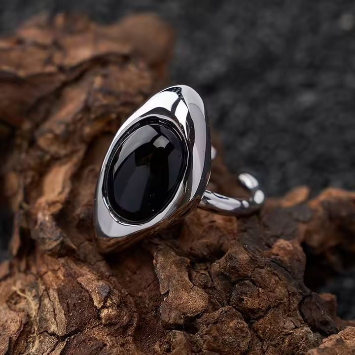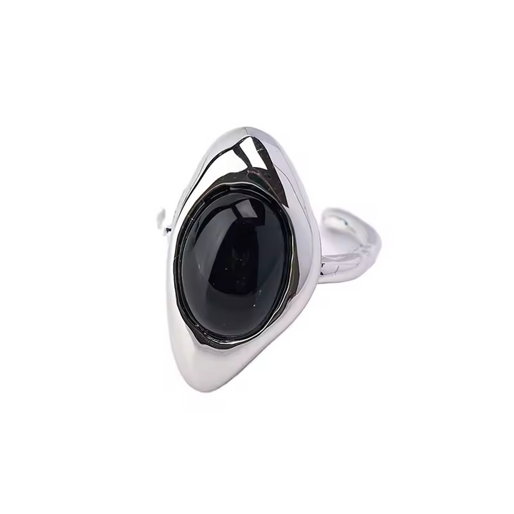 Damenring mit schwarzem Zirkonia, ovales Motiv, Silber 925.