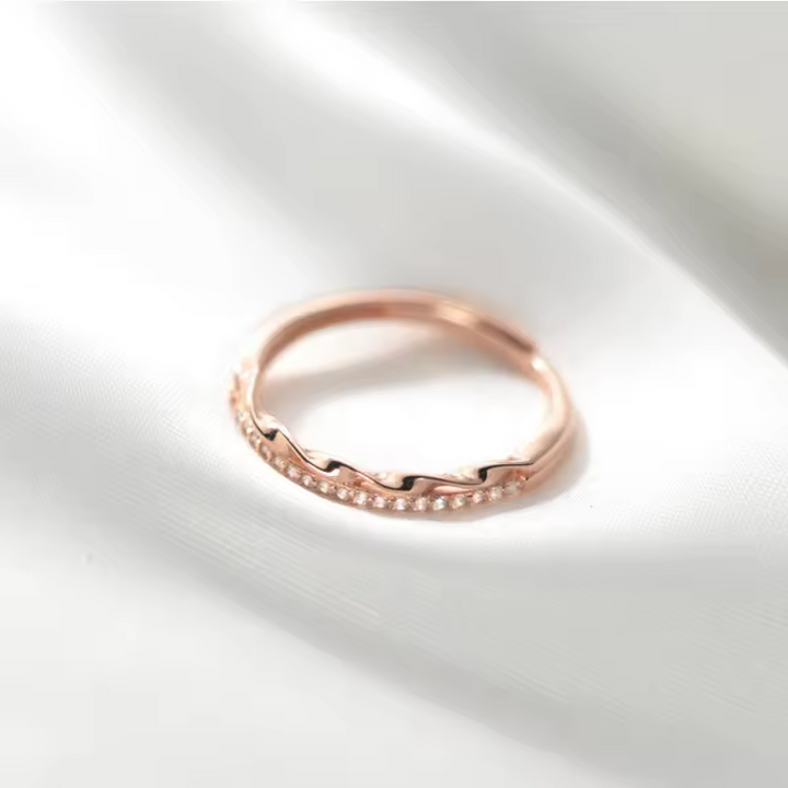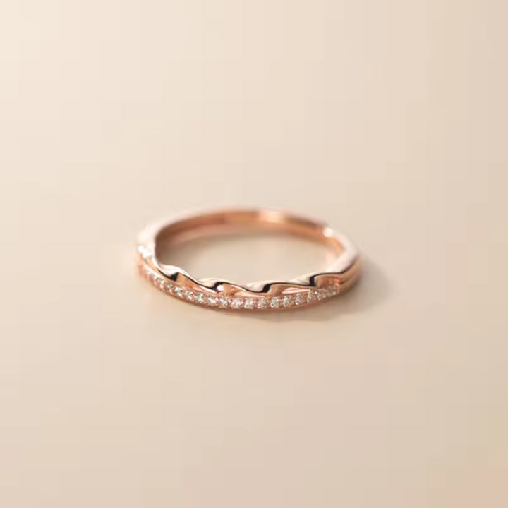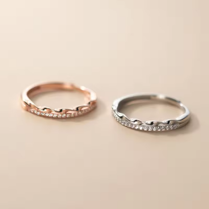 Damenring mit Zirkon-Doppelschicht, Sterling Silber 925, offen, größenverstellbar.