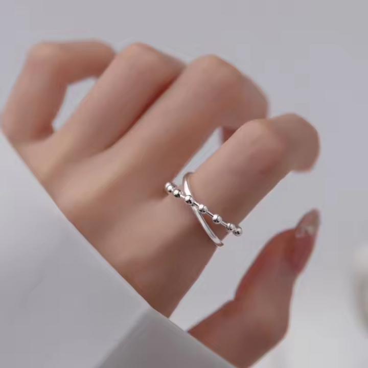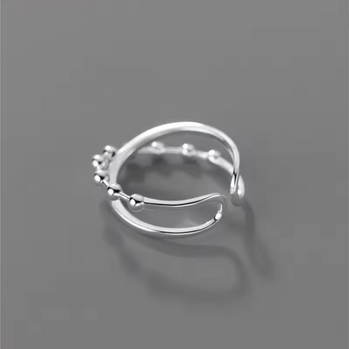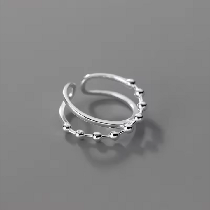 Damenring mit zwei Reihen kugeln Sterling Silber 925, größenverstellbar.