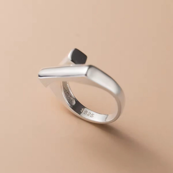 Damenring Nische-Design ineinandergreifenden Blöcken, Silber 925, glatt -Offen