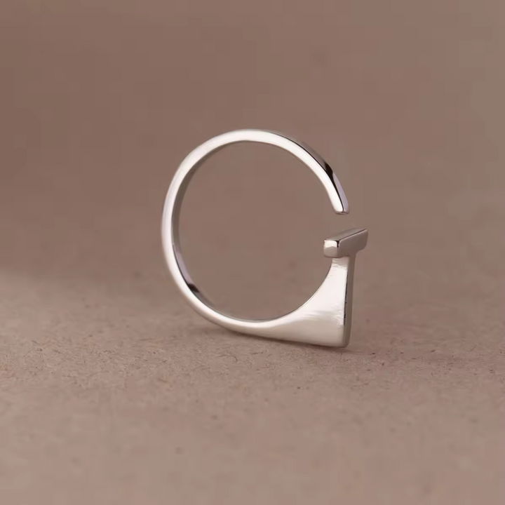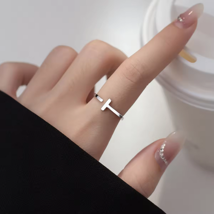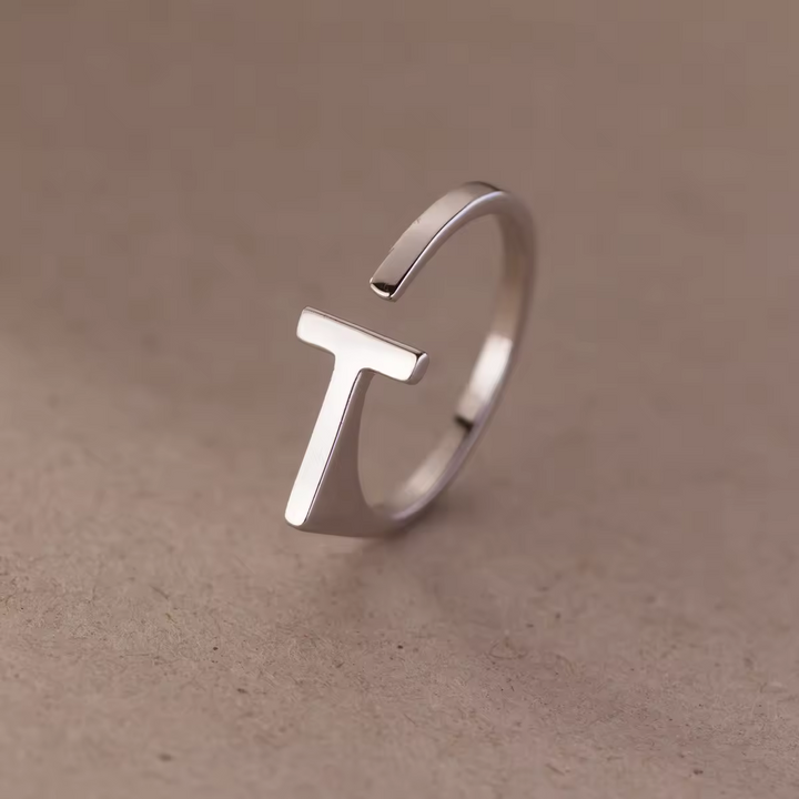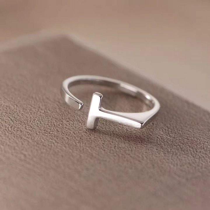 Damenring, Sterling Silber 925, mit T-Motiv Buchstabe, größenverstellbar