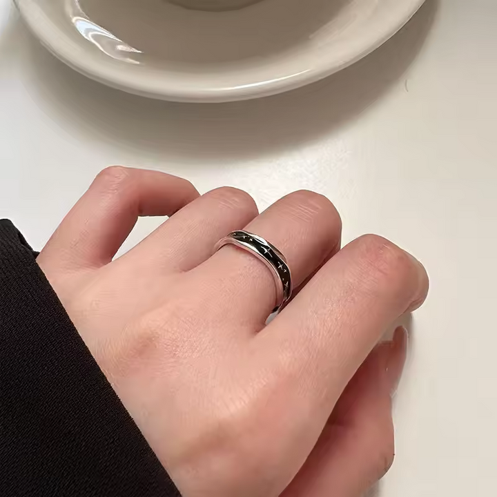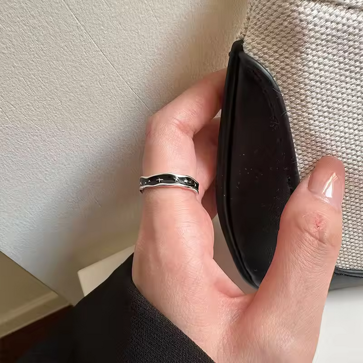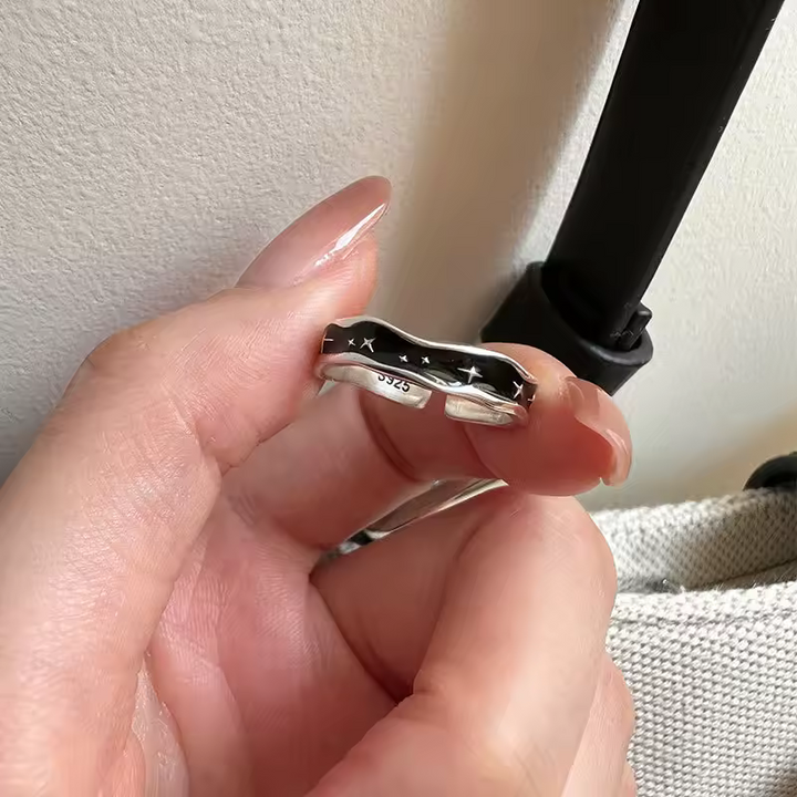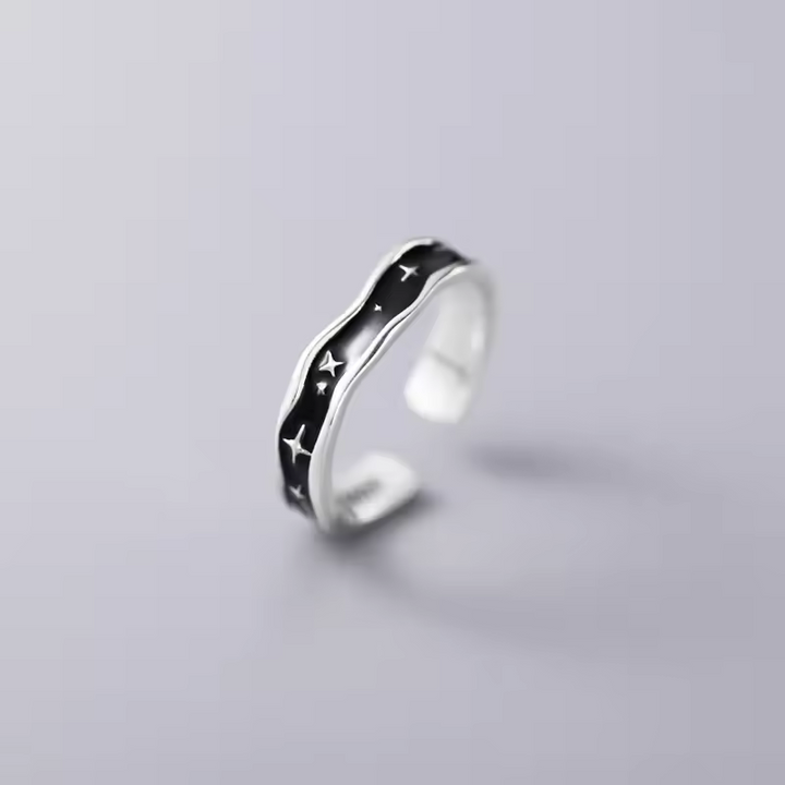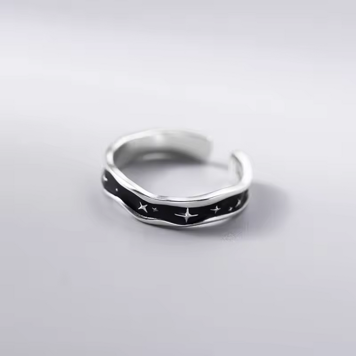 Damenring Sternenhimmel, Silber 925, schwarz, größenverstellbar 48-57