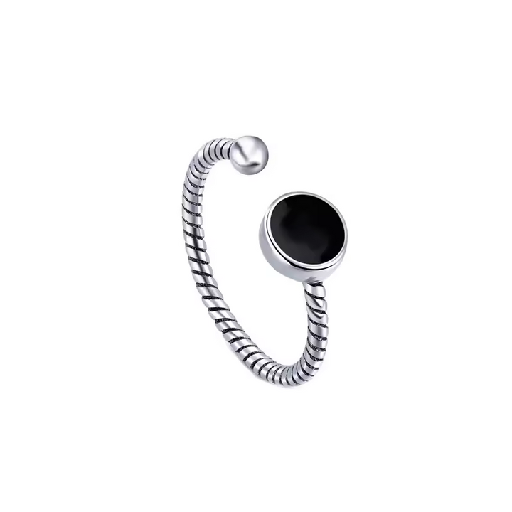 Damenring, verdreht, schwarz, rund, Sterling Silber 925, Größe wählbar