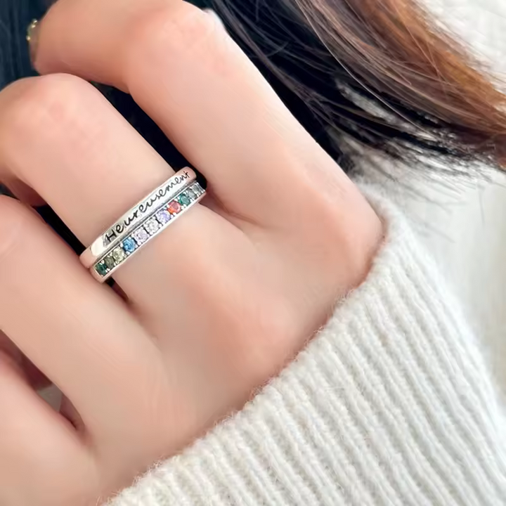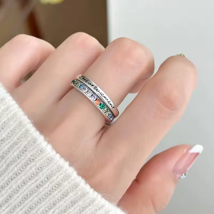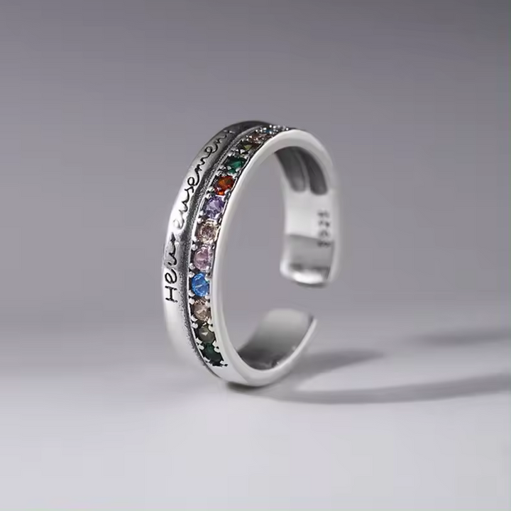 Damenring Zirkonia-Reihe Multi Farben , leicht geschwärzt, größenverstellbar