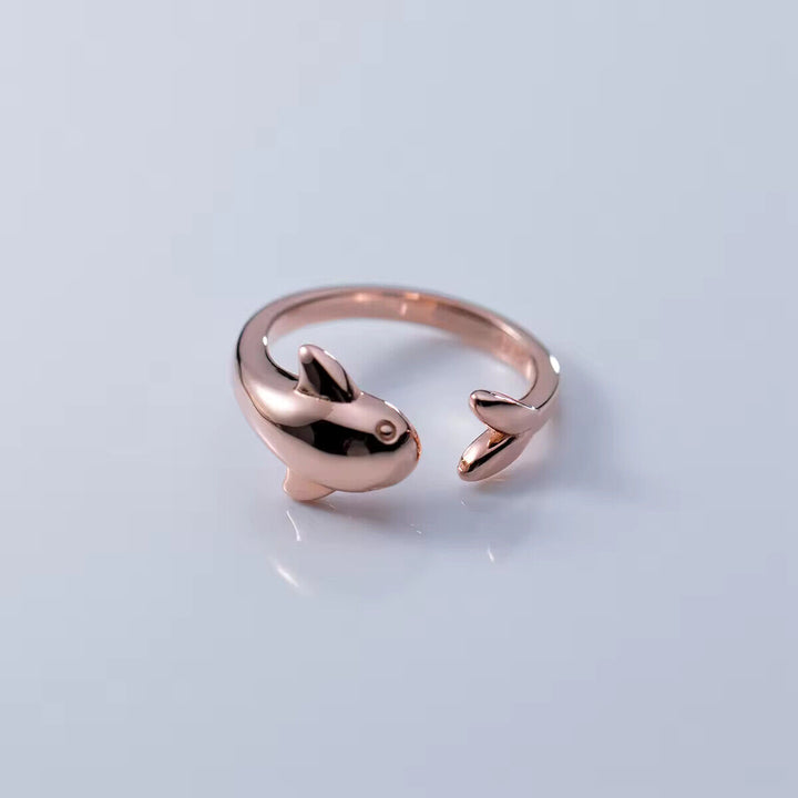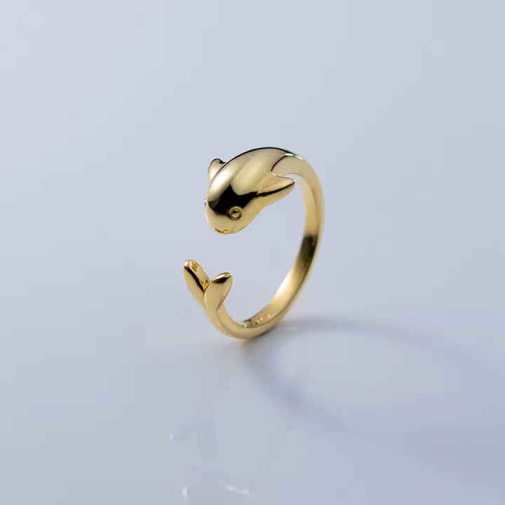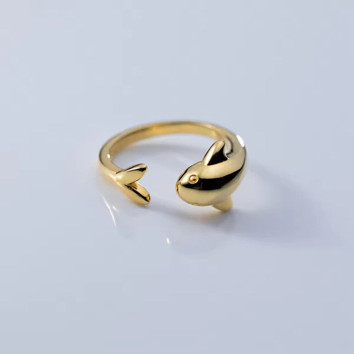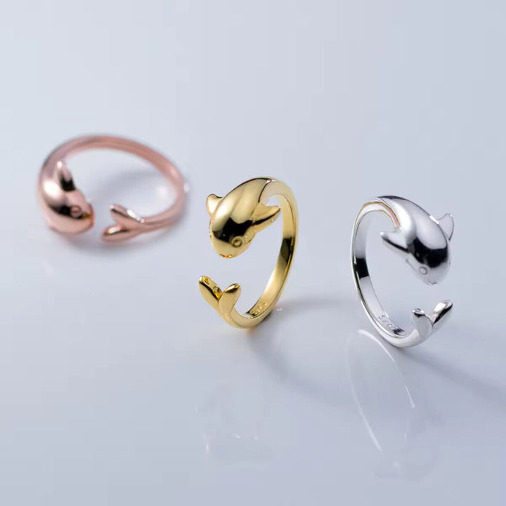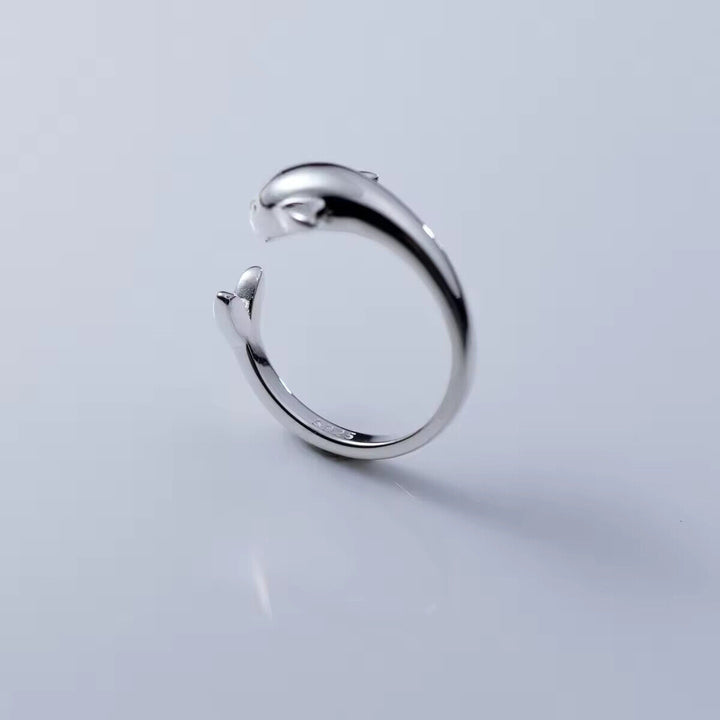 Damering mit Delphin motiv, Sterling Silber 925, Fische Farbe wählen.