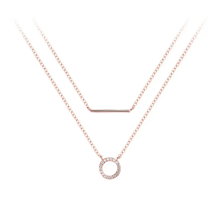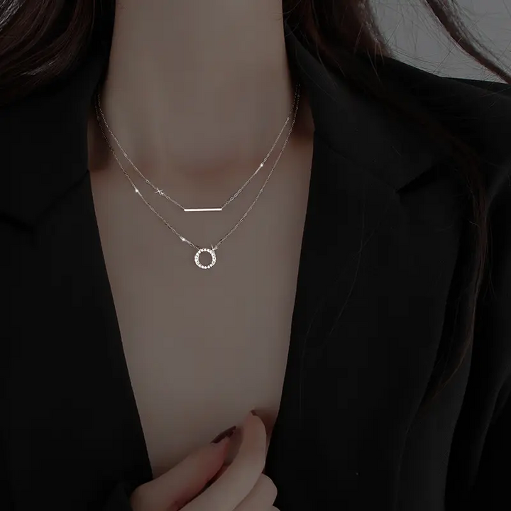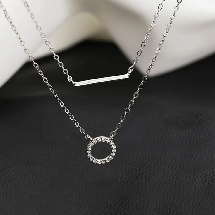 Doppel Halskette m-Anhänger Rund Sterlingsilber 925 Zirkonia Damen kette