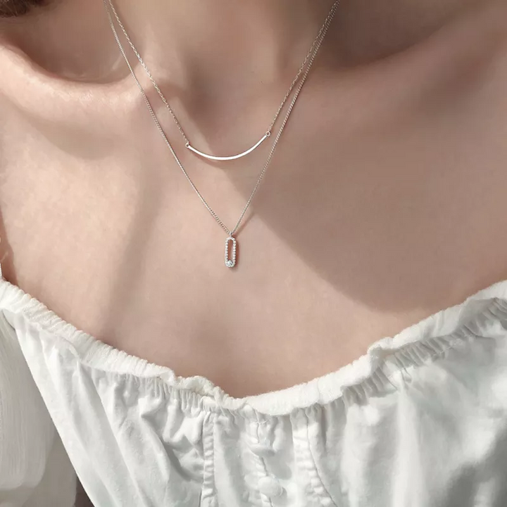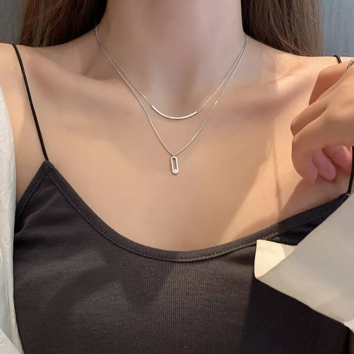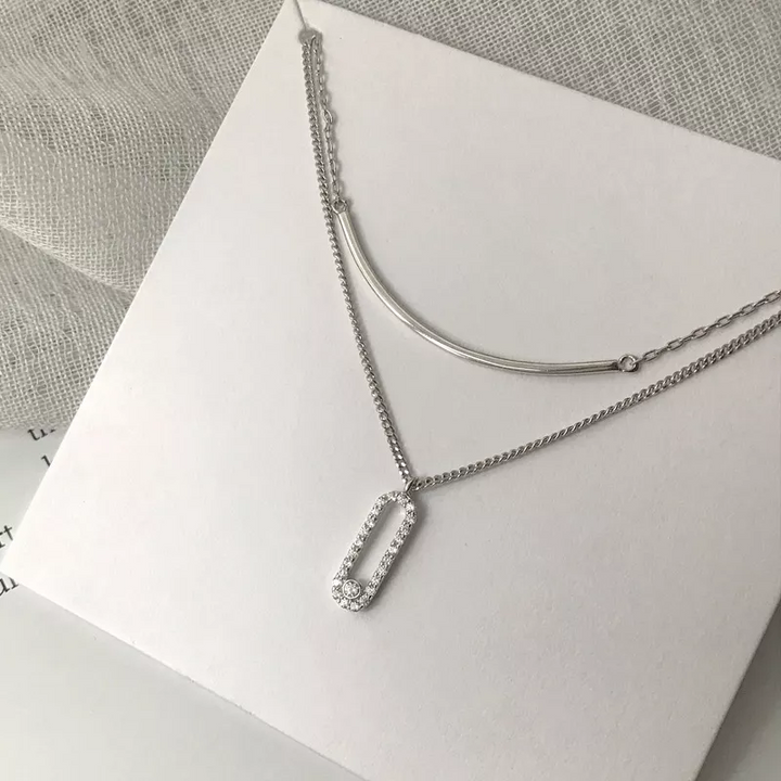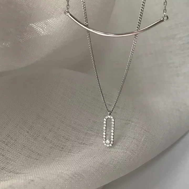 Doppel Halskette Sterling Silber mit Zirkonia Damen Kette