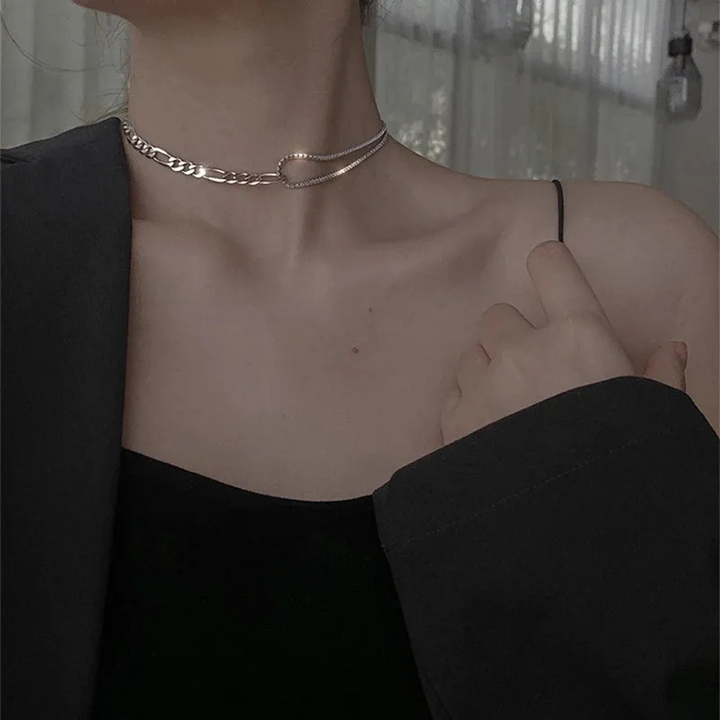 Doppel Halskette Sterlingsilber Damen Multilayer Kette Modeschmuck