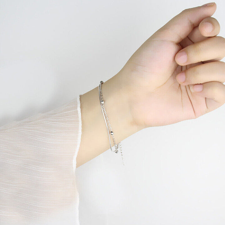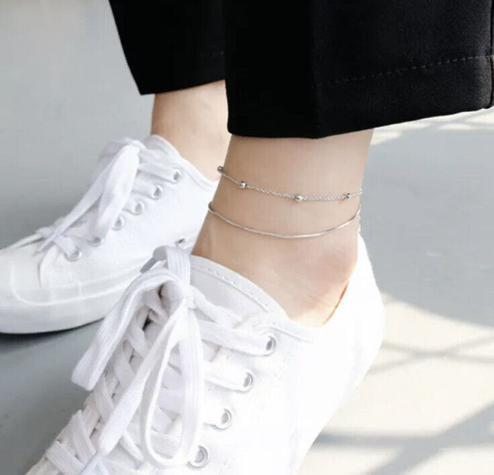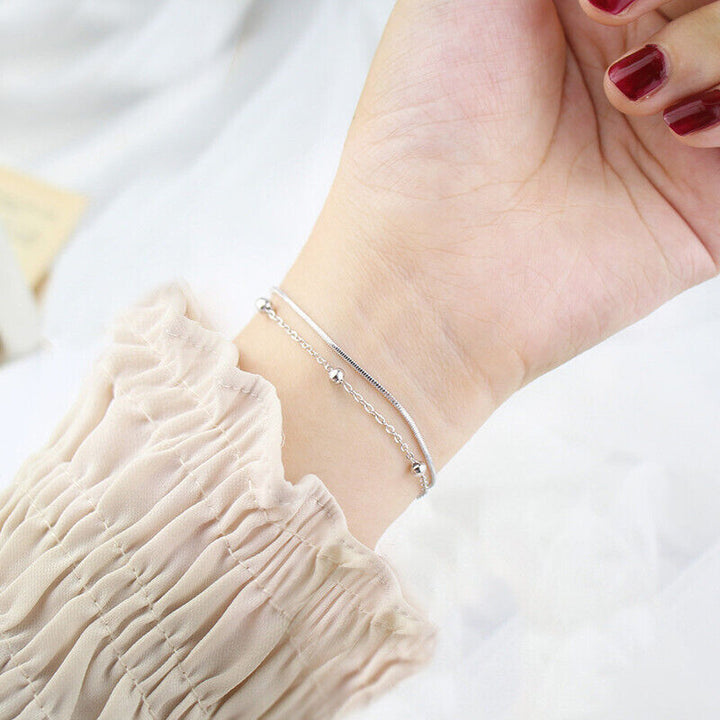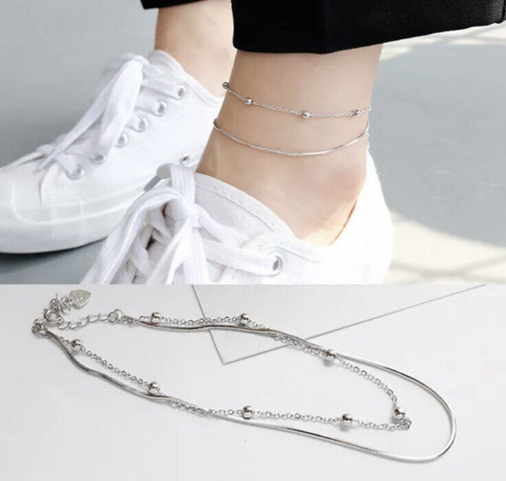 Doppelarmband Kugel Silber 925 Damen Armkette Fußkettchen 21 cm