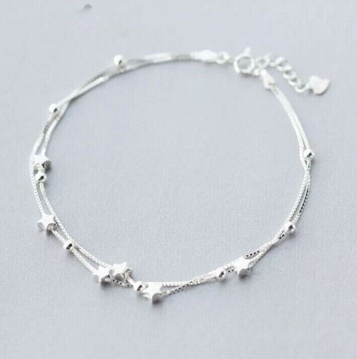 Doppelarmband Stern Sterlingsilber 925 16 -21 cm Damen Fußkette