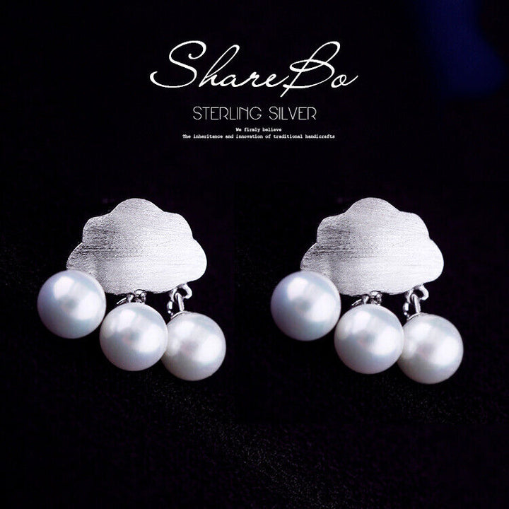 Drei Doppel Perlen Ohrringe 925 echt Silber perlen Damen Ohrstecker
