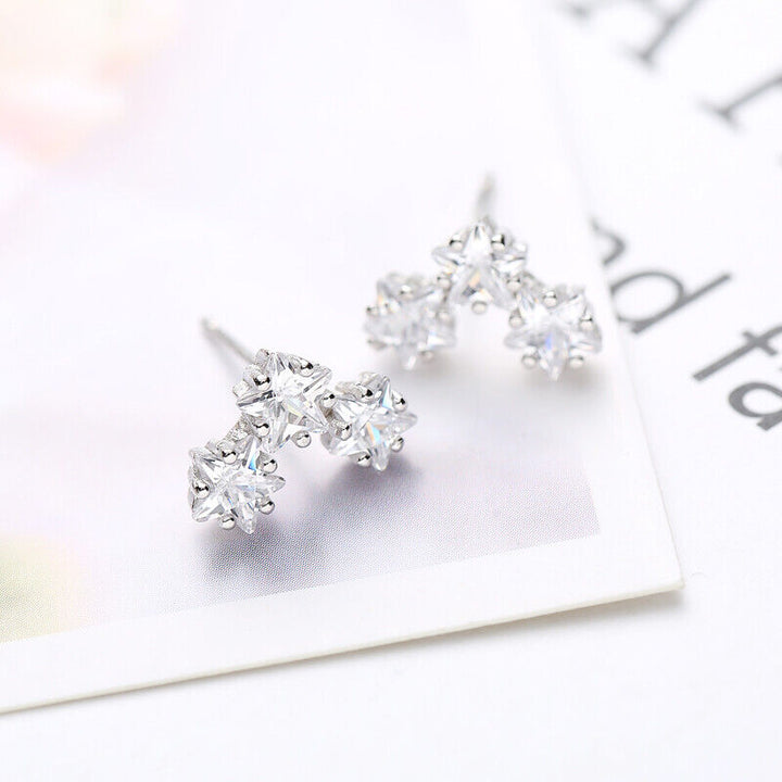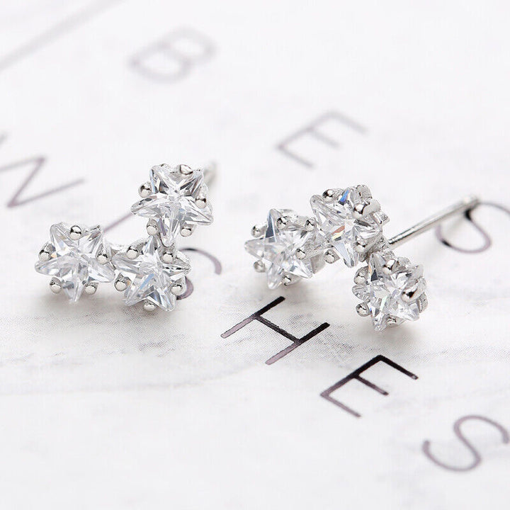 Drei Sterne Ohrstecker Silber 925 zirkonia Damen Mädchen Ohrringe