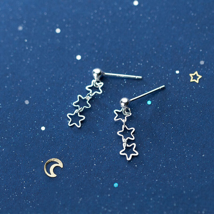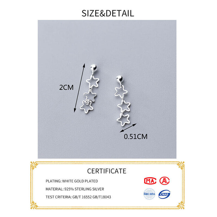 Echt Ohrstecker 3 Stern Sterling Silber 925 Damen Ohrringe Ohrhänger