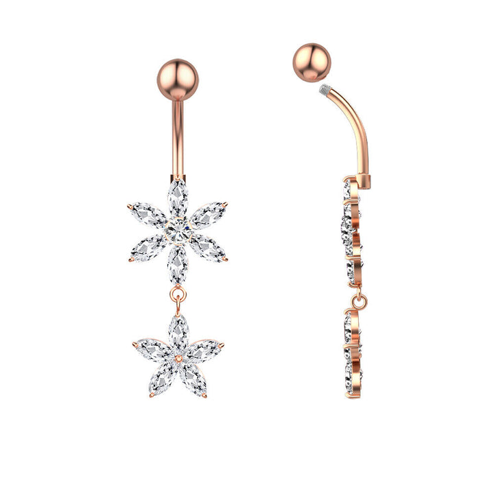 Edelstahl Bauchnabel Piercing Blume Stab Zirkon Nabel Kristall Banane Kette