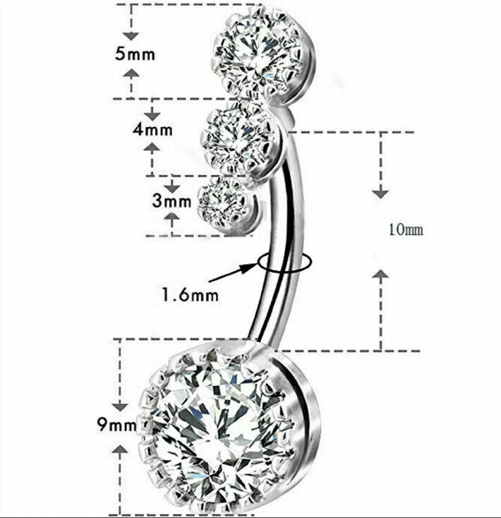 Edelstahl Bauchnabel Piercing Gebogener Stab Zirkon Nabel Kristall Banane Kette*