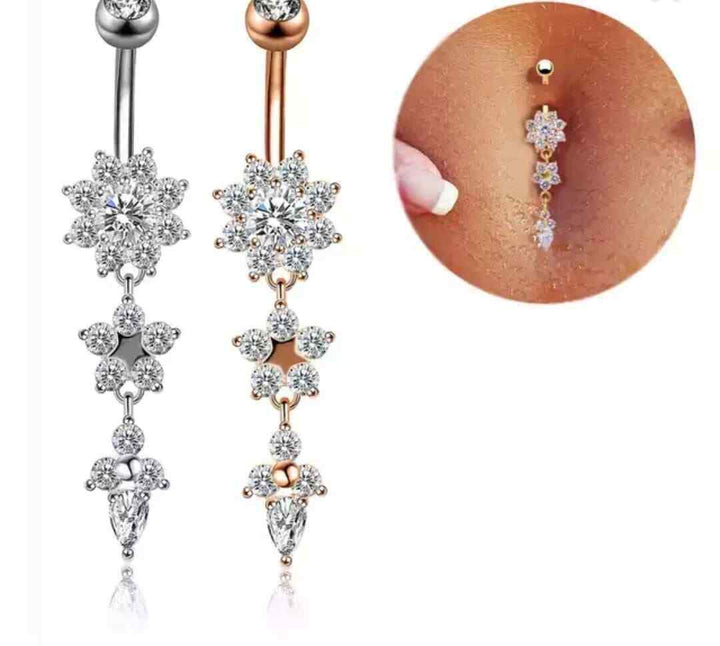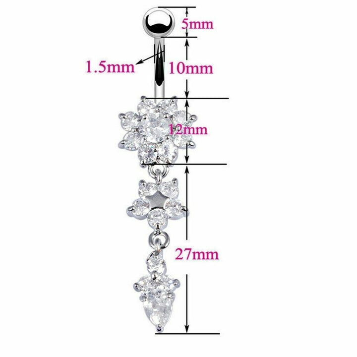 Edelstahl Bauchnabelpiercing Schmuck Blume mit Kristallen
