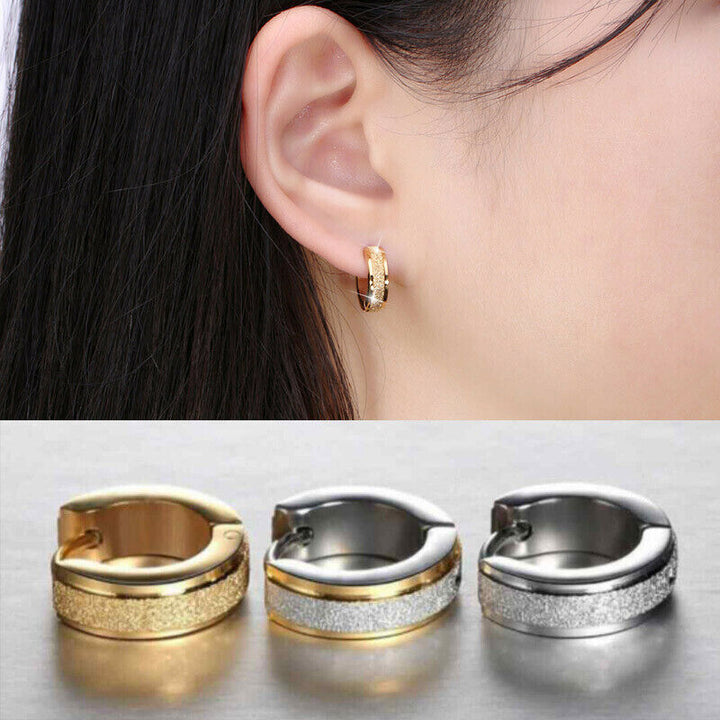 Edelstahl Creolen Klapp Silber & Gold Damen Mädchen Ohrringe