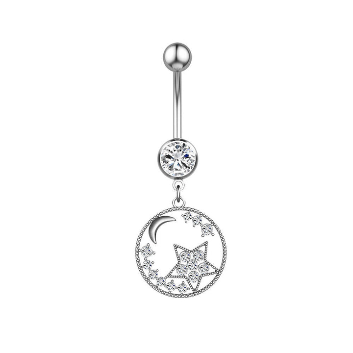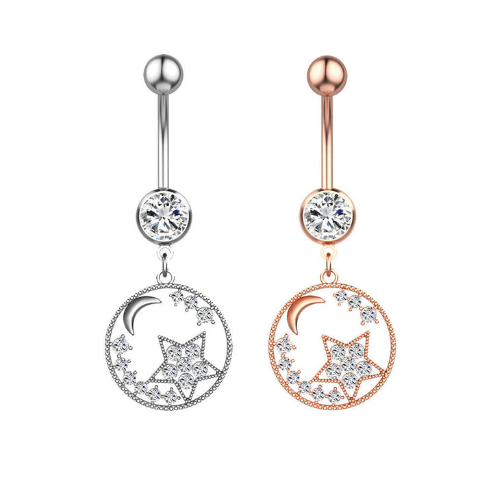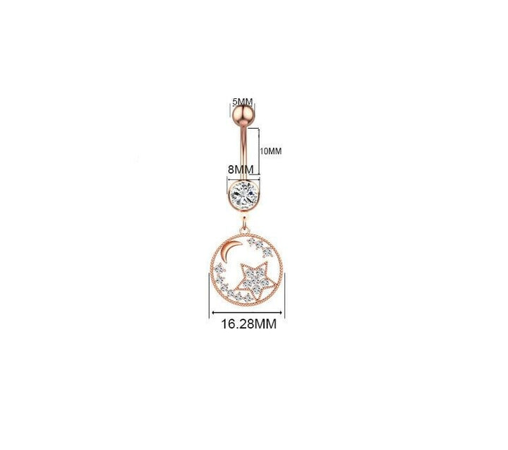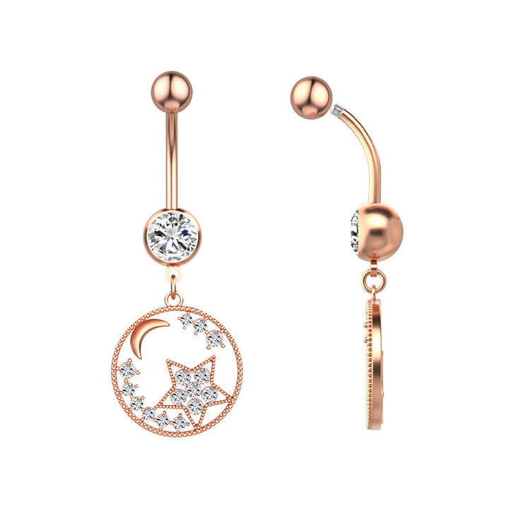 Edelstahl Mond Stern Bauchnabelpiercing Silber Rosegold Piercing Kristall