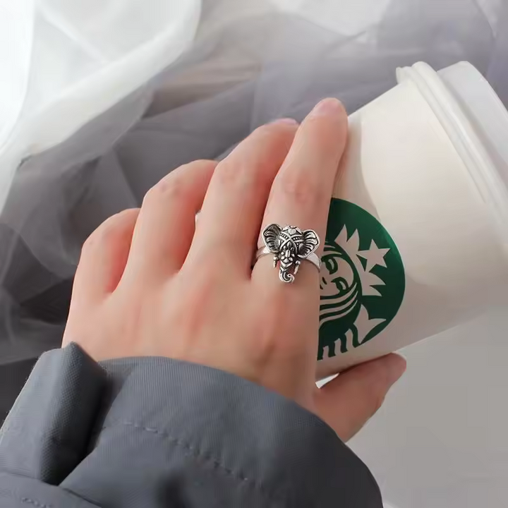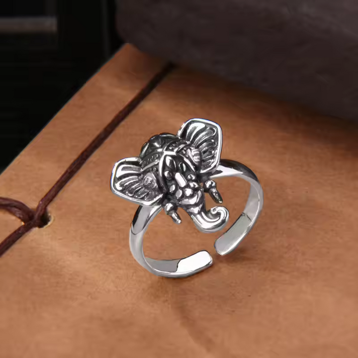 Elefanten Damenring – 925 Sterling Silber, Geschwärzt, Größe wählbar