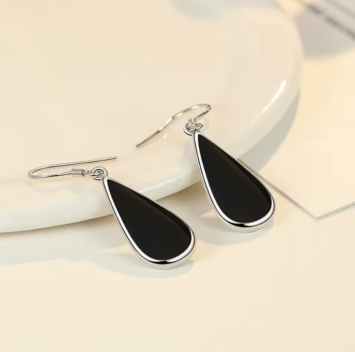 Elegante 925 Sterling Silber Tropfen-Ohrringe mit schwarzem Oval-Onyx-Design