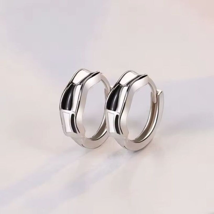 Elegante Damen & Herren Creole Ohrringe Sterlingsilber 925 | Weiß - Schwarz