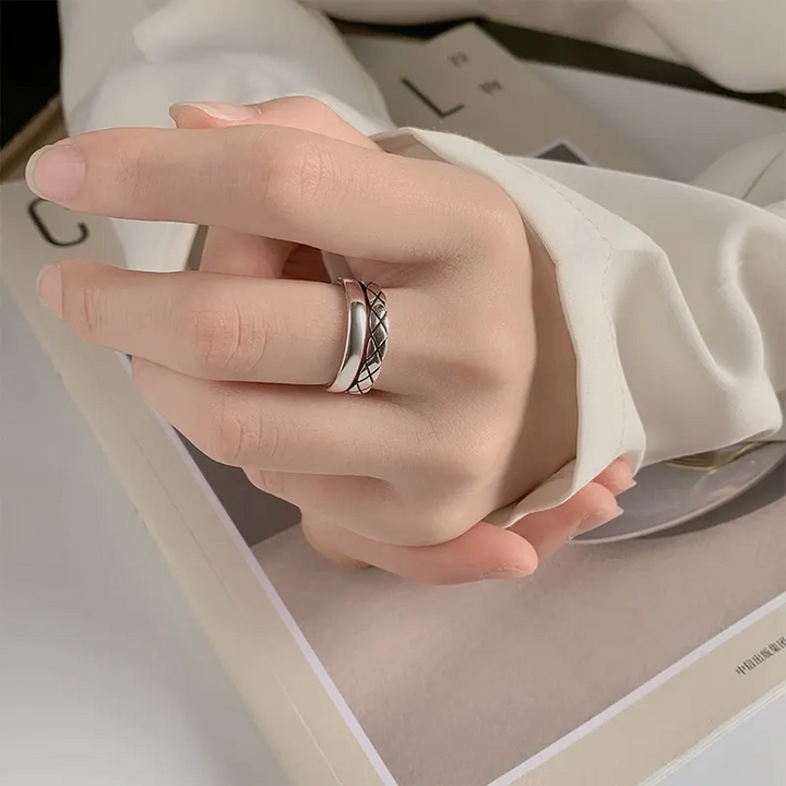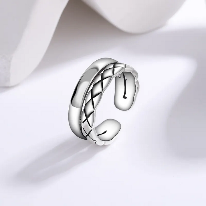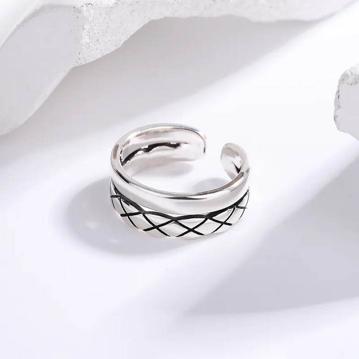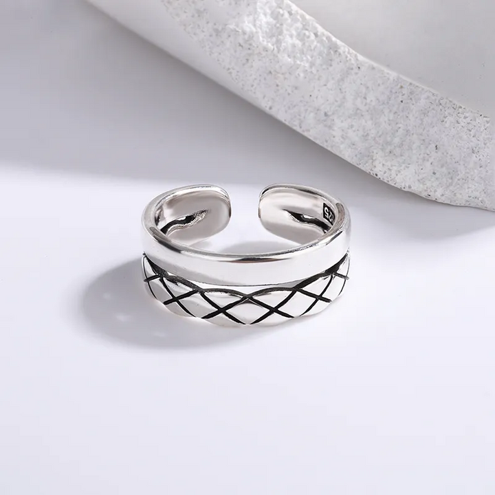 Geöffneter Reihen Sterling Silber 925 ring mit elegantem Rautenmuster