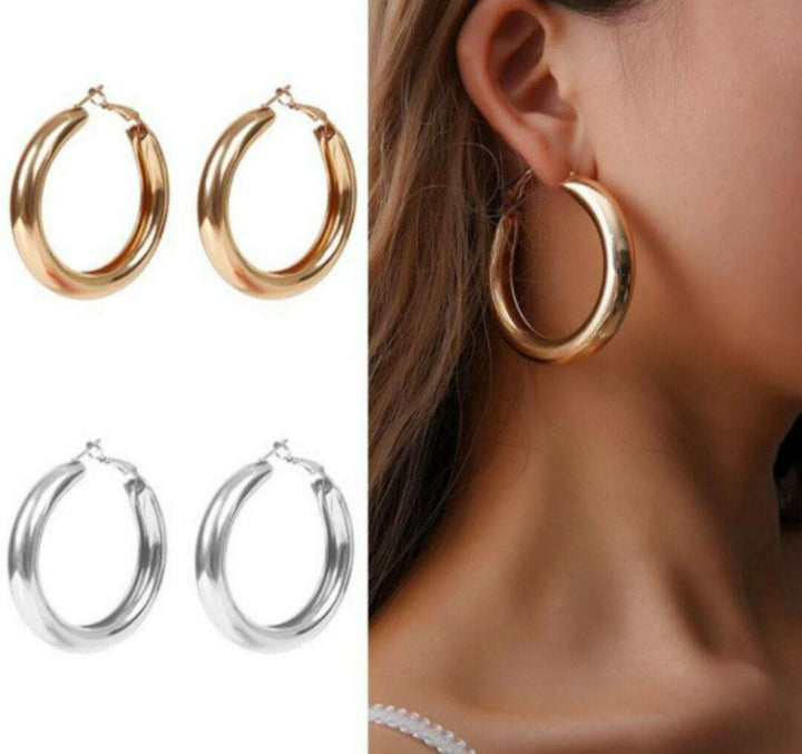 Große Creole Ohrschmuck Damen Glänzend Ohrhänger Ohrstecker Ohrringe