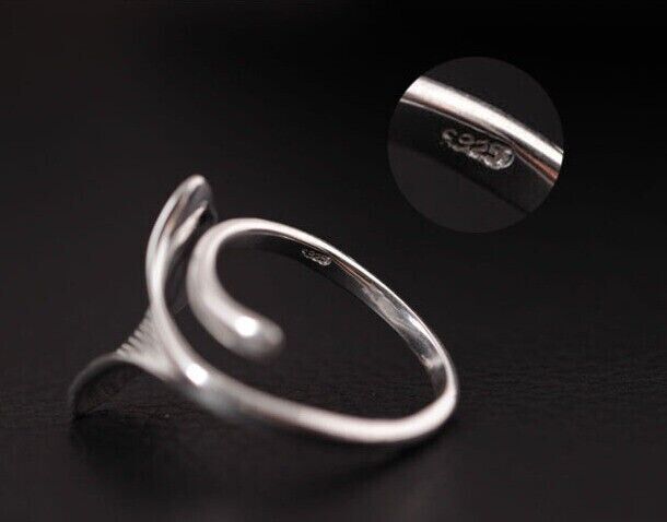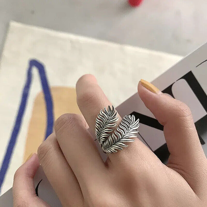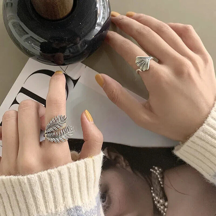 Großer Damen Silber 925 Ring Ginkgo Blatt 49-64 verstellbar offen