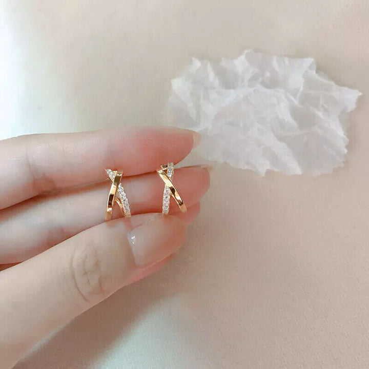 Halb Creolen Sterlingsilber 925 Zirkonia Damen Ohrstecker
