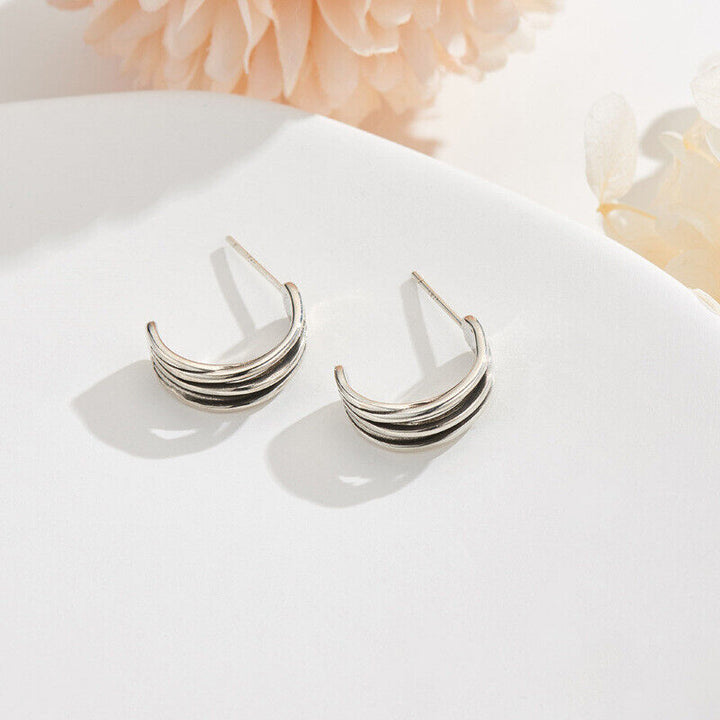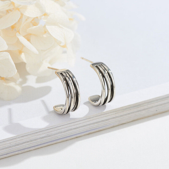 Halb Creolen Ohrstecker Geschwärzt Sterlingsilber 925 Damen Ohrringe