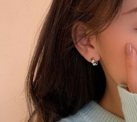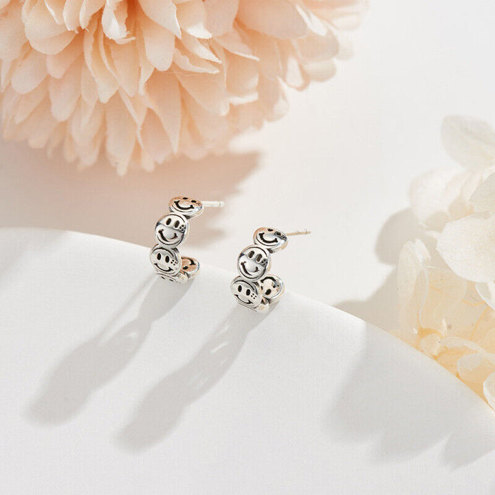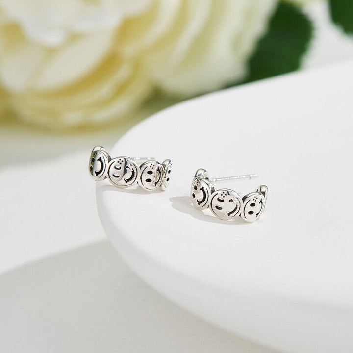 Halb Creolen Lachen Ohrstecker Silber 925 Damen Ohrringe