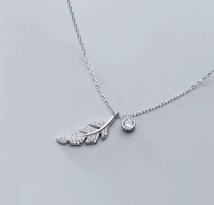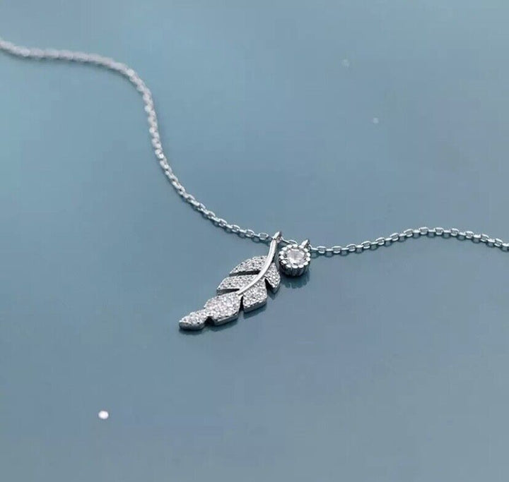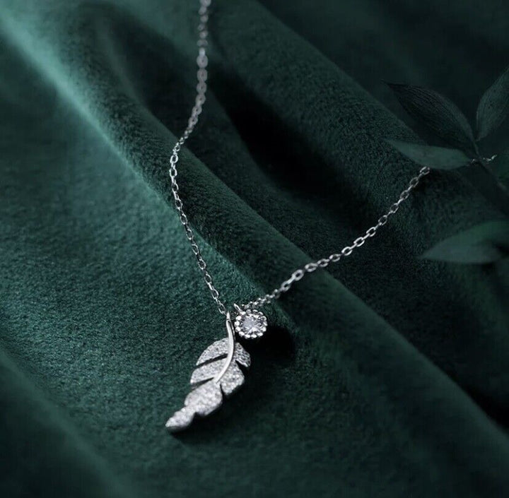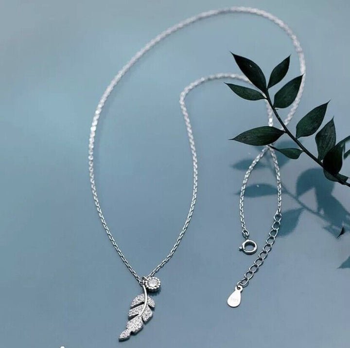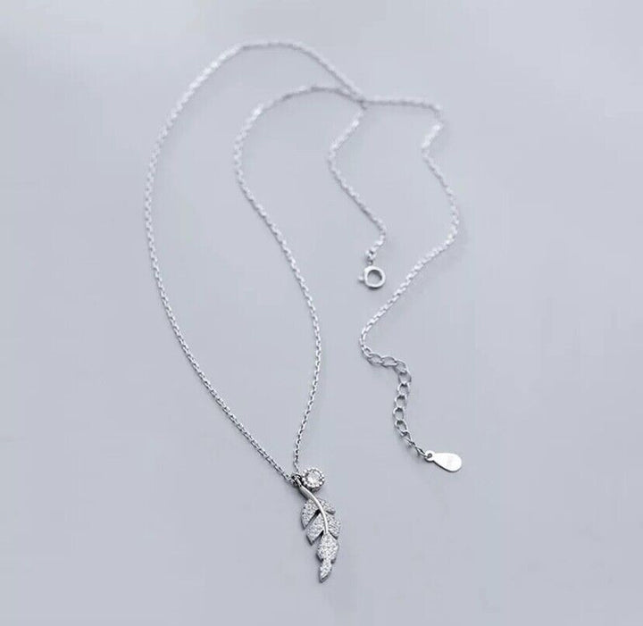 Halskette Blatt Silber 925 Zirkonia Damen Collier 39-44 cm