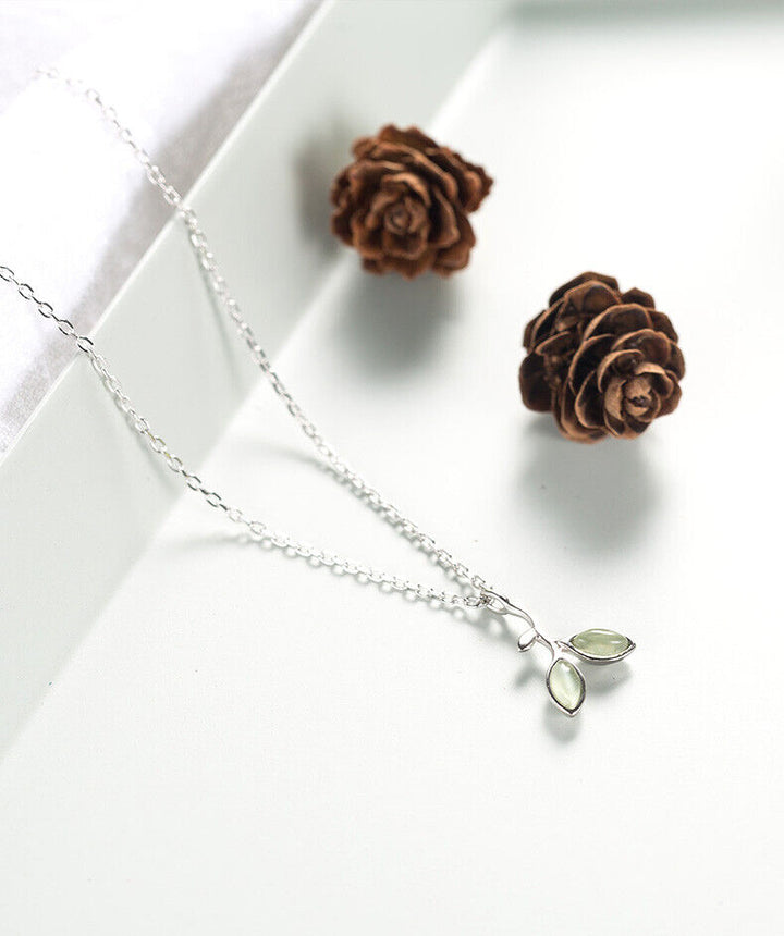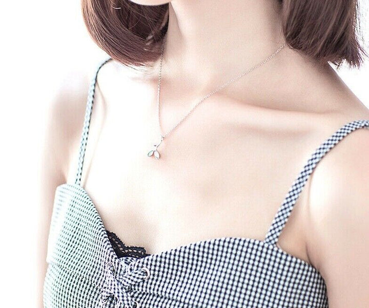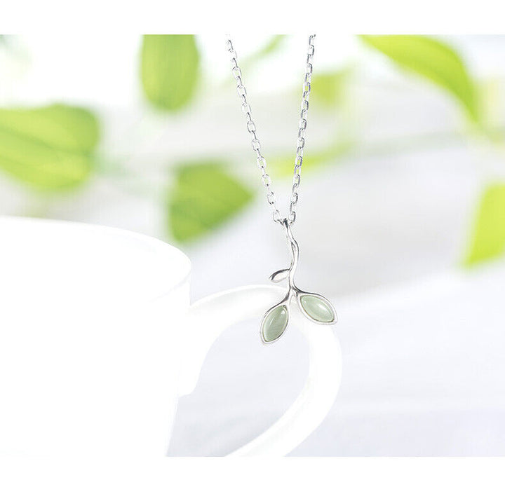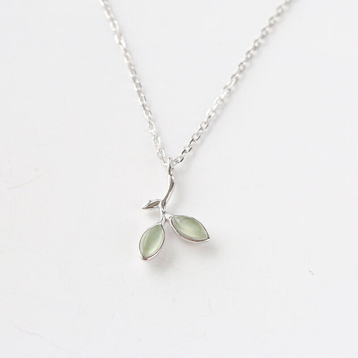 Halskette Blätter Grün Opal Silber 925 Collier Damen Kette