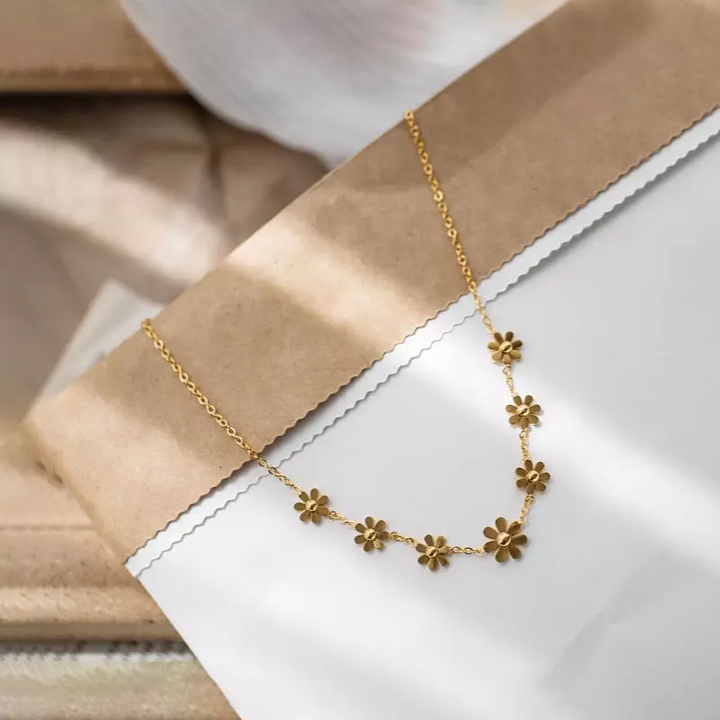 Halskette Blumen Gold Farbe Edelstahl Damen Kette