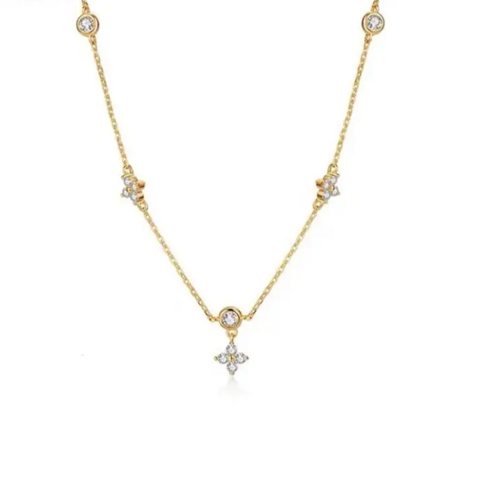 Halskette Blumen Sterling Silber 925 Zirkonia Damen Collier