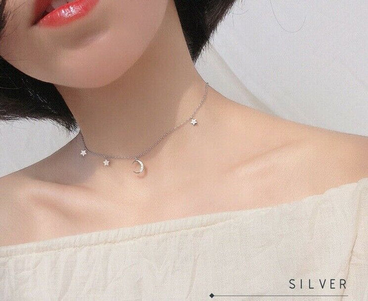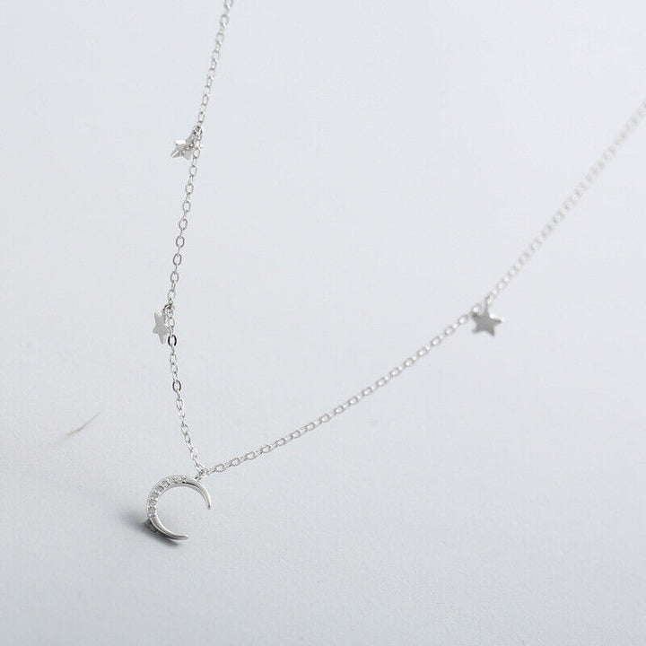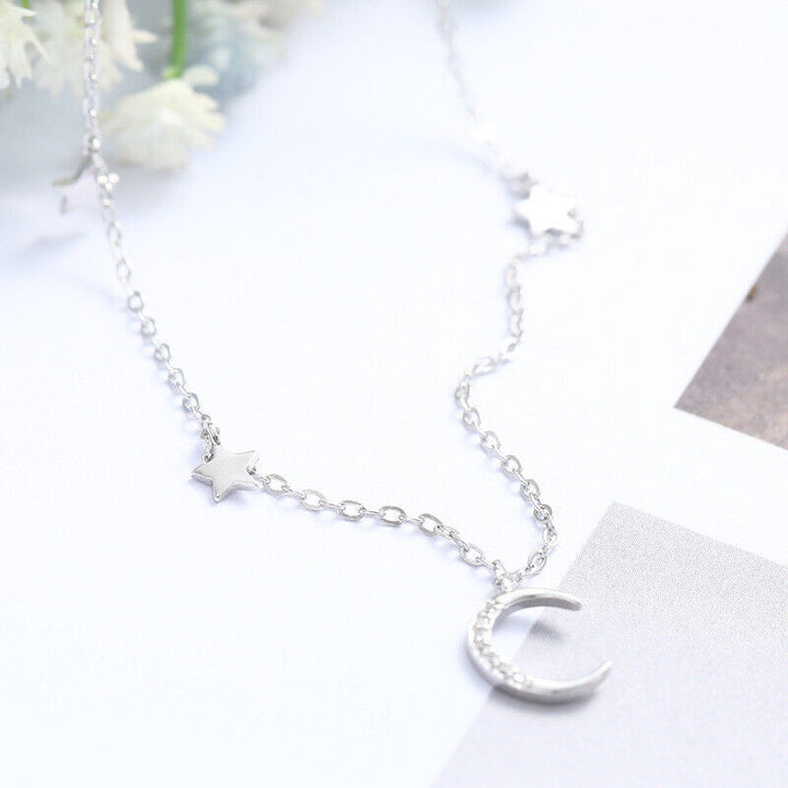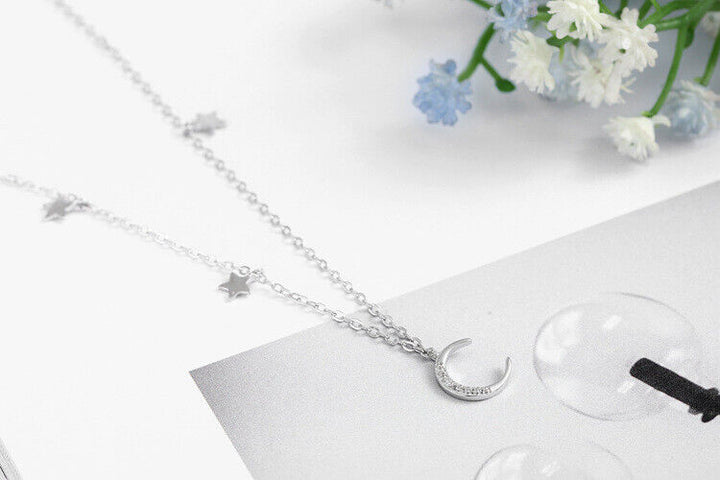 Halskette echt Sterlingsilber 925 Damen Mädchen 45cm Stern Mond mit Zirkonia
