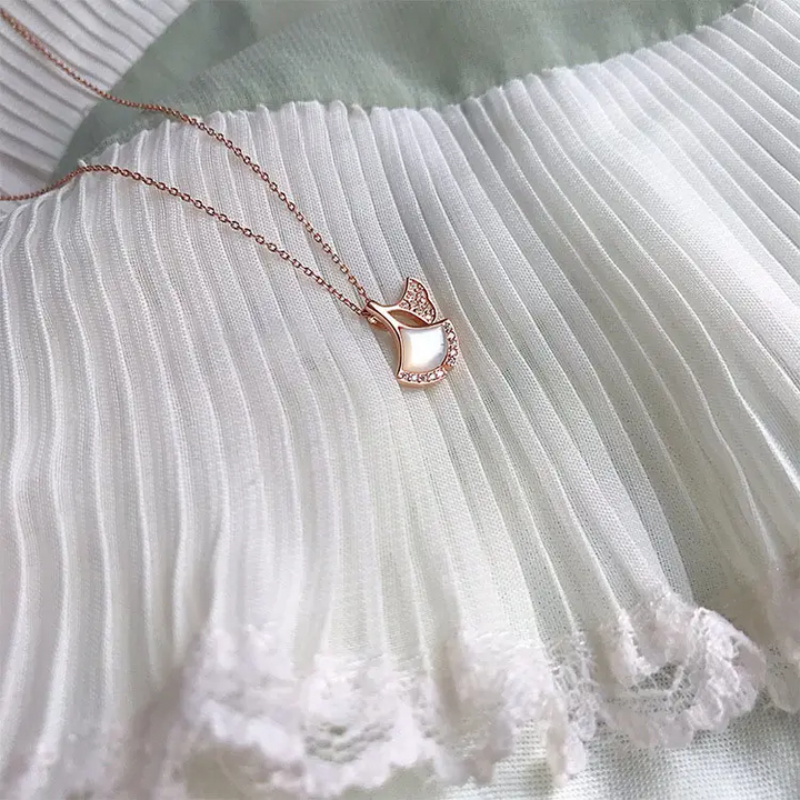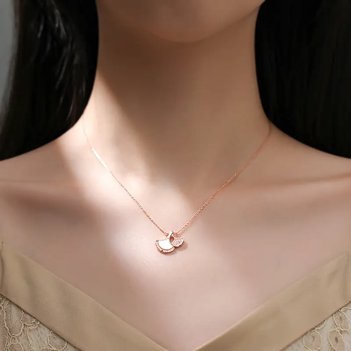 Halskette Ginkgo Blatt Sterling Silber 925 Zirkoniaa Damen Kette