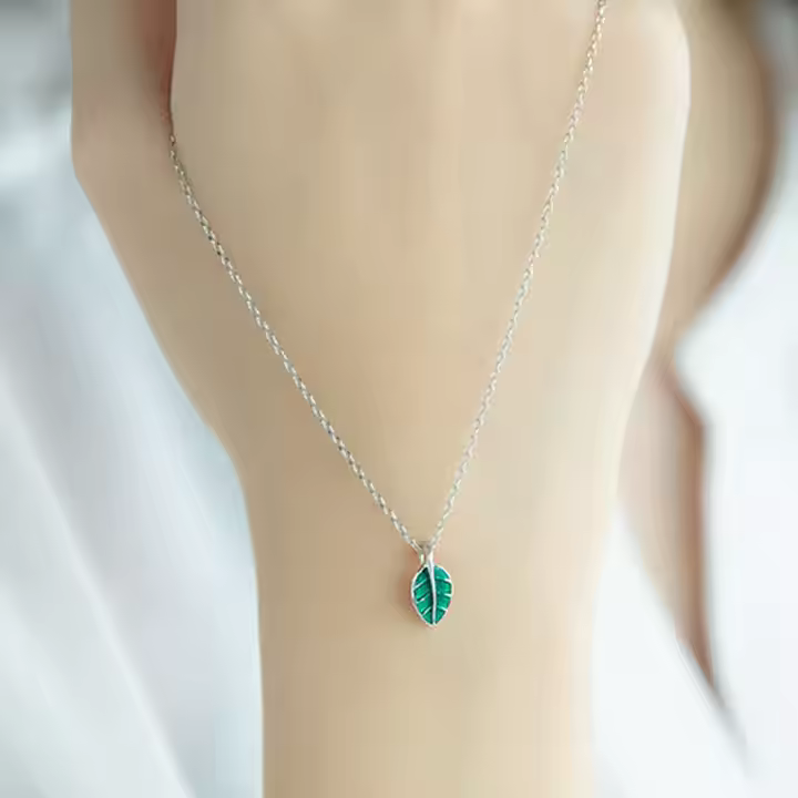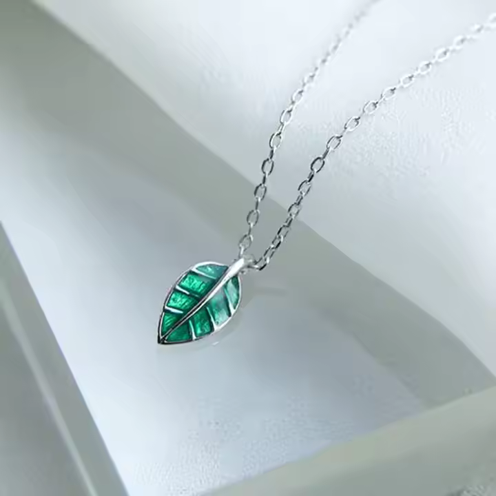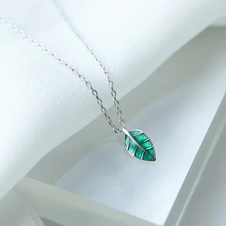 Halskette Grüner Blatt Sterling Silber 925 Damen Kette